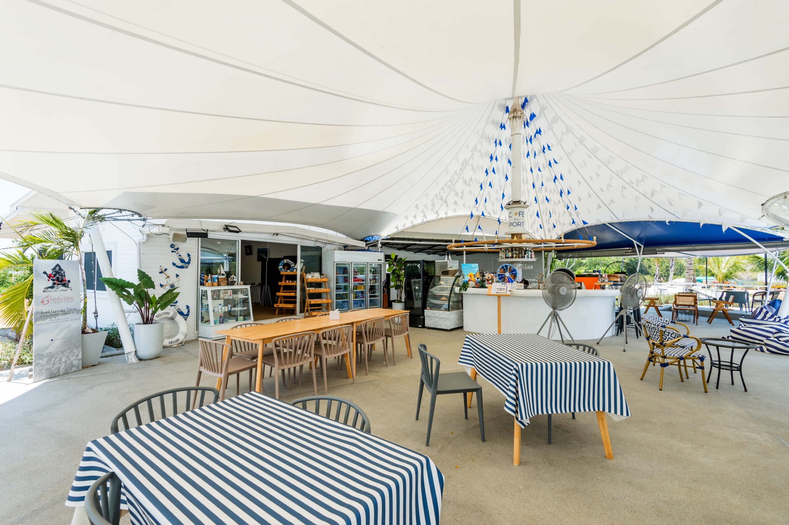 Our semi-outdoor café serves a mix of Thai and Western comfort cuisine, accompanied by stunning waterfront views overlooking the marina. The relaxed, welcoming atmosphere makes Café du Port the ideal social space for marina tenants, local expatriates, and professionals to connect and unwind.